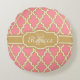 Mit Monogramm rosa und goldenes Gittermuster Rundes Kissen