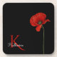 Mit Monogramm roter Mohn auf schwarz Getränkeuntersetzer