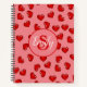 mit Monogramm rotes Herzmuster auf Rosa Notizbuch