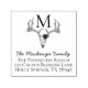 Dieses Land Xmas mit Monogramm Briefmarke bietet eine handgezeichnet Abbildung eines Rentierschädels mit Rose. Personalisieren Sie Ihre Monogramm, Ihren Familiennamen und Ihre Rücksendeadresse