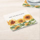 Die Mit Monogramm rustikale gelbe Sonnenblumengarten Papier Untersetzer. Mit Aquarellbild des Gelbblütenfeldes und bearbeitbaren Texten, die angepasst werden können. Geeignet für naturgetreue Veranstaltungen.