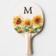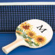Die Mit Monogramm rustikale Gelbe Sonnenblumengarten Ping Pong Paddle. Mit Aquarellbild des Gelben Sonnenblumenfeldes und bearbeitbaren Texten, die mit Ihrem Namen initialisiert werden können. Geeignet als Geschenk für Naturliebhaber.