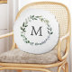 Mit Monogramm Sage Green Blätter Grünfläche Kranz Rundes Kissen