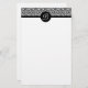 Schreiben Sie eine Notiz an Ihre Freunde und Familie mit diesem personalisierten stationären. Dieser Briefkopf weist ein schwarz-weißes Damaskusmuster auf, wobei ein Monogramm auf einem schwarzen Kreis initialisiert wird. Sie können das Monogramm auf dieser Schreibwarenseite anpassen, indem Sie Ihren eigenen Brief auf der Produktseite hinzufügen. Wenn Sie gewollt, um die Position des Monogramms anzupassen, wählen Sie "anpassen". Stellen Sie sicher, dass Sie in unserer Floral Damask II Hochzeitskollektion - Black die koordinierenden Umschläge, Briefmarke und andere Produkte Karo erhalten.