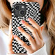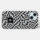 Fügen Sie Ihren Accessoires eine spielerische Drehung mit diesem lebhaften Design mit einem schwarz-weiß karierten Muster hinzu. Der dynamische, optische Täuschungseffekt der welligen Karo schafft ein einzigartiges und auffälliges Aussehen. Das personalisierte Monogramm fügt eine elegante und individuelle Touch hinzu und macht dieses Design sowohl stilvoll als auch unverwechselbar. Ideal für diejenigen, die Liebe kühl, lustig, Vintag, groovy und trendig.