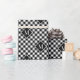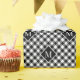 Das diagonale Schwarz-Weiß-Büffel-Karo-Muster weist ein sich wiederholendes Monogramm in einem schwarzen Diamanten mit weißem Rand auf beiden Seiten auf. Fügen Sie Ihren Initial in der Sidebar hinzu. Klicken Sie auf den Link Rocklawn Arts, um das moderne Schwarz-Weiß-Gingham Kariert zu sehen. Copyright ©Claire E. Skinner. Alle Rechte vorbehalten.