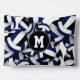 Dieser Reißverschluss-Beutel zum Thema Volleyball weist ein zufälliges Muster aus blau, schwarz und weiß gedrehten Volleybällen auf weißem Hintergrund auf - mit dem Monogramm des Volleyballspielers - von katz_d_zynes