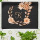 Personalisiertes Mit Monogramm Schwarz, Braun und Pfirsichfarben Küchentuch mit Blumenmuster. Sehen Sie sich unser passendes Küchenzubehör an.