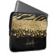 Moderne, tierische Laptop-Hülle - sowohl Zebra als auch Leopard - in Pinselstrichen mit Gold, Glitzer, Schwarz und mit dem Monogramm des Skriptes, Vorname und Initial.