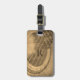 Dieses mit Monogramm Gepäckanhänger mit Gitarrenmotiv zeigt das Nahaufnahmen eines akustischen Gitarrenklanglochs, Rosette, Saiten und Halssockel, kombiniert mit einer abstrakten Textur und einem Sepiaton - von katz_d_zynes