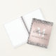 Eleganter Kalligraphiename und Monogram Blank Sketchbook - Girly Art Journal mit einem Imitat metallisch blush rosa Hintergrund mit silberfarbenen Glitzer Rändern. Ein niedliches Skizzenbuch, das Künstlern ein großartiges Reisegeschenk machen würde. Fügen Sie Ihren Namen zur aktuellen Skriptvorlage, zum benutzerdefinierten Monogramm und zur Volume-Nummer hinzu, um Ihr eigenes personalisiertes zeichnend Journal zu erstellen.