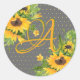 Mit Monogramm Sonnenblumen Gelb-Grau-Dekoration Runder Aufkleber