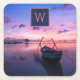 Mit Monogramm Sonnenuntergangsgewässer mit Schiff Rechteckiger Pappuntersetzer