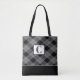 Dieses Design zeichnet sich durch ein kariertes Schwarz-Weiß-Tartan-Muster aus, in dessen Mitte ein Monogramm-Logo angebracht ist. Sie können diesen Totbeutel mit Ihrer Initialisierung personalisieren, indem Sie die benutzerdefinierte Vorlage verwenden.
