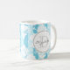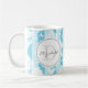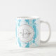 Die farbenfrohe und feminine Monogramm-Tasse aus blau gestreiften Damasken macht das Geschenk perfekt.