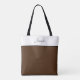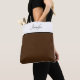 Braune Tasche mit rechteckigem Bereich, um Ihren Namen zu markieren. Stilvoll zum Tragen als Handtasche oder zum Tragen Ihrer Lebensmittel. In verschiedenen Formen und Größen erhältlich.
