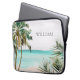 Schützen Sie Ihr Notebook im tropischen Stil! Dieser mit Monogramm Ärmel verfügt über einen Aquarellblau-Strand, Blätter mit Palmen und Küstenvibes, die sich für Sommerliebhaber eignen.