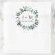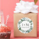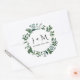 Runder Umschlag Aufkleber mit Ihren Initialen und Hochzeitsdatum sind perfekt zum Siegel von Umschlägen für Hochzeitsfeiern und Brautparty Party. Handfarbenes Waldblatt in verschiedenen Tönen von smaragdgrünen Jägern von Audrey Jeanne Roberts. Urheberrecht.
