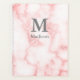 Ein großes graues Monogramm ist auf einem Imitat mit rosa Marmorboden. Unter dem Monogramm können Sie Ihren Namen oder einen anderen gewünschten Text hinzufügen.