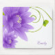Mit Monogramm violette Blumen mit grünen Blättern auf weißem Hintergrund. Anpassbare Mauspad-Vorlage