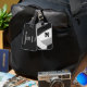 Dieses einfach entworfene Gepäckanhänger zum Thema Volleyball zeigt das realistische Bild eines abstrakt überdimensionierten Volleyballs mit schwarzen, grauen und weißen Panels - personalisieren Sie mit Spielernamen und Monogramm auf der Vorderseite, Adresse und Telefonnummer auf der Rückseite - von katz_d_zynes