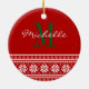 Mit Monogramm rundes Weihnachtsbaumschmuck für Freunde, Familie, Mitarbeiter, Lehrer, Mitarbeiter, verlobtes Ehepaar, Ehemann und Ehefrau, Braut und Bräutigam etc. Elegante Skripttypografie-Vorlage für Namenmonogramm. Niedliche personalisierte Winterurlaubsdekoration Geschenkidee für ihn und sie. Klassisches, rotes und grünes, doppelseitiges Weihnachtszubehör mit nordischem Schneeflockmuster "hässlicher Weihnachtspulli". Fügen Sie Namen auf beiden Seiten hinzu. Ändern Sie die Menge, um den billigen Bulk-Preis zu erhalten. Enthält eine funkelnd Goldkette.