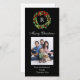 Klassische Monogramm Fotokarte... Geschmackvolle Eleganz für ein traditionelles Weihnachtsportrait. Verwenden Sie mit beliebigen Foto-, Horizont- oder Vertikalausrichtungen. Dieser moderne, dunkelschwarze Hintergrund ist die perfekte Kulisse für eine elegante, in Rot und Grün gehaltene heilige Kranzgrafik mit roten Beeren, Blätter und einem kurvenreichen roten Bandbogen. Einschließlich eines Monogramms für den Single auf der Innenseite des kreisrunden Kranzes. Sehr stattliche und stolze Art und Weise, den ersten Buchstaben Ihres Nachnamens zu zeigen, während ein Foto mit der Familie und Menschen, die Liebe zu teilen, erhalten Updates von dem, was jeder in diesen Tagen aussieht.
