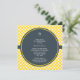 Weiße und gelbe Polka-Dot-Design mit Monogramm. Das Design weist weiße Polka-Punkte auf gelb und einen kohlegrauen Kreis in der Mitte auf. Brautpartyeinladungen.