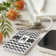 Ein stilvoller Schlüsselanhänger oder Keyring zum Personalisieren, mit einem Zickzackmuster von trendigen Schwarz-Weiß-Chevrons. Viel Spaß beim Experimentieren mit verschiedenen Schriftart und Farben für den Anfang.