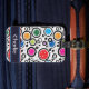 Gepäckanhänger mit farbigen Pickleballs und schwarzen Kreisen auf weißem Hintergrund. Perfekt als Geschenk für einen modischen Pickleball-Spieler. Individuelle Name unten