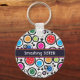 Schlüsselanhänger mit farbigen Pickleballs und schwarzen Kreise auf weißem Hintergrund. Perfekt als Geschenk für einen modischen Pickleball-Spieler. Anpassbarer Text. Alles Gute zum Tragen und die besten Wünsche für Ihre zukünftigen Spiele!