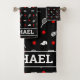Mit Namen 🎾 schwarz-weiß Tennis 🎾 Badhandtuch Set