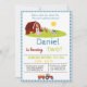 Bedruckbares Bauernhofgeburtstags-Einladungs-Set auf einem Bauernhof mit Tieren vor einem Bauernhofhaus sprang durch einen Zaun.