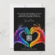Mit der Einführung des "Herz des Stolzes" Hochzeit speichern Sie die Date Card! Diese bezaubernde Karte zeichnet sich durch fesselndes Kunstwerk aus zwei Händen aus, das eine Herzgeste in lebhaften LGBT-Farben vor einem schwarzen Hintergrund darstellt und Liebe, Einheit und Stolz symbolisiert. Die Hände, die in den leuchtenden Farben der LGBTQ+ Stolz-Fahne gemalt werden, schaffen ein kraftvolles und bedeutendes Bild, das perfekt Ihren besonderen Tag verkündet. Ganz oben auf der Karte werden die Worte "Save the Date" elegant angezeigt, sodass Ihre Gäste ihre Termine für Ihre Veranstaltung festlegen können. Darunter sind deine Namen schön in den herzförmigen Raum geschrieben, der von den Händen geschaffen wurde, und fügen der Ankündigung eine persönliche und intime Touch hinzu. Das Datum Ihrer Hochzeit wird deutlich gezeigt, damit Ihre Gäste wissen, wann Sie Ihre Einladung erwarten. Unter dem Datum befindet sich ein individualisierbarer Textbereich, in dem Sie weitere Details über Ihre Hochzeit, wie z.B. Veranstaltungsort, Kleiderordnung oder spezielle Anweisungen, angeben können. Auf der Rückseite der Karte befindet sich eine kleinere Version des "Herz des Stolzes"-Kunstwerks in der rechten unteren Ecke, das ein zusammenhängendes und optisch ansprechendes Design bewahrt. In der Mitte gibt es Platz für eine benutzerdefinierte Nachricht, in der Sie Ihren Gästen eine persönliche Note, ein beliebtes Zitat oder andere Informationen, die Sie teilen möchten, hinzufügen können. Zusätzlich enthält die Karte einen QR-Code, den die Gäste scannen können, um auf Ihre Hochzeitswebsite zuzugreifen, und eine moderne Touch. Auf diese Weise können Gäste auf einfache Weise wichtige Informationen über Ihre Hochzeit, wie den Zeitplan, die Unterkünfte und die Registrierungsdaten, zugreifen. Alles in allem ist das "Herz des Pride" Wedding Save the Date Card eine schöne und elegante Wahl für Paare, die ihren Hochzeitstag stilvoll verkünden gewollt haben. Mit atemberaubenden Bildern, anpassbarem Textbereich und QR-Code für den einfachen Zugang zu Ihrer Hochzeitswebsite verlasst diese Karte Ihren Gästen einen bleibenden Eindruck.