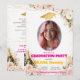 Feiern Sie ihren wichtigen Meilenstein in sanftem, elegantem Stil mit dieser pink-goldenen Einladung zur Abschlussfeier. Die Vorderseite zeigt ein vollständig anpassbares Foto, umrahmt von Rosen, Champagner-Akzente und warmen festlichen Details – perfekt, um die Persönlichkeit des Absolventen und die strahlende Freude am großen Tag zu präsentieren. Der gesamte Text ist komplett editierbar, sodass Sie jedes Detail an die Veranstaltung anpassen können.