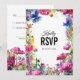Einführung der RSVP-Karte aus der "Meadow Blooms Collection", die für Eleganz und Komfort konzipiert ist. Auf der Vorderseite befindet sich der Titel "Kindly UAWG" sowie das Datum, bis zu dem die Gäste antworten sollten, um einen zeitgerechten und organisierten Antwortprozess zu gewährleisten. Auf der Rückseite, vor einem schlichten, weißen Hintergrund, finden die Gäste genügend Platz, um ihre Namen zu schreiben und ihre Antwort anzugeben. Dazu gehört, ob sie teilnehmen werden, wie viele Gäste sie begleiten werden und welche Allergien sie für den Catering erwähnen müssen. Zusätzlich ermöglicht ein QR-Code in der Ecke, bequem online zu reagieren und dem UAWG eine moderne Touch hinzuzufügen. Die RSVP-Karte "Meadow Blooms Collection" verbindet anspruchsvolles Design mit praktischer Funktionalität und sorgt für ein nahtloses und genussvolles Erlebnis für die Gäste, da sie ihre Anwesenheit bestätigen und wichtige Details für die Feier liefern.