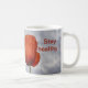 Bleibe gesund mit einer roten Blume, einem Mohn am Himmel mit Sonne