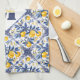 🍋 Küchentuch mit atemberaubenden Azulejos. 🍋 Lemon Azulejo mit blauen Blumenelementen. Atemberaubende Blumenmotive mit blauen und gelben Motiven im spanischen Azulejo-Stil, traditionelle Motive, kühle Farben und Muster, inspiriert durch Folklore,