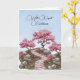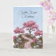 Eine wunderschöne Beileid-Karte mit Gartenweg und rosa Baumblüten, die jemandem, der einen Liebsten verliert, Frieden bringt.