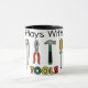 Kennst du jemanden, der immer an ihren Werkzeugen herumbastelt? Dieses Design mit einer Reihe von Werkzeugen und "Plays with tools" ist sicher, ein Lächeln ins Gesicht zu bringen!