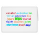 Ein schönes Wortbild mit Wörtern, die mit den Abenteuern des Reisens in Zusammenhang stehen. Helle Farben und verschiedene Schriftart machen es attraktiv.