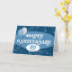 Dies ist eine blaue Anniversary-Karte für Mitarbeiter mit dem zentral platzierten Text 'Happy Anniversary' in Weiß in einem ansprechenden Schriftart und Set gegen ein hellblau, ovales Textfeld. Unter diesem Text steht die Anzahl der Jahre. Zu den verlassen des Textes gehören ein paar Ballons, ein blassgraues und ein blaues, mit dem Ergebnis, dass sie durch ihre Saiten verankert sind, die um den Wunsch des ersten "A" des Jubiläums gewickelt sind. Der Hintergrund ist dunkelblau mit einem hellen Kreis und Sternen Muster. BITTE BEACHTEN SIE: Der silberne Funkeleffekt wird im Kunstwerk simuliert, es gibt keinen Glitzer, mit dem diese Karte hergestellt werden kann. Design von NATALIE KINNEAR
