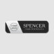 Schwarze Namensschilder, die mit Ihrem eigenen Firmenlogo auf einem hellgrauen Farbverlauf gekennzeichnet sind. Einstellungsfähiger Name in einem eleganten Serif-Schriftart und Name/Firma unten. Mit dem Designwerkzeug können Sie Schriftart ändern, Elemente verschieben und verändern.