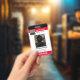 Einfach Abzeichen für Firmenname oder Firmenangestellte mit rot gestreiftem Hintergrund anpassen. Der gesamte Text ist einstellbar. Fügen Sie Ihr eigenes Firmenlogo hinzu. Fügen Sie oben im Abzeichen Ihr Firmenlogo hinzu. Wenn die schnelle Vorlagenanpassung für Ihr Logo nicht funktioniert, klicken Sie auf die weitere Option anpassen, um Ihr Logo zu löschen und auf die Karte hinzuzufügen.