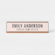 Die moderne, hellrot-schwarze Schreibtischplatte enthält den Namen des Mitarbeiters und den beruflichen Stellentitel in stilvollen Schriftart. Kann vollständig personalisiert werden mit Ihrem eigenen Text und Ihren Farben und Ihrer Wahl der Rahmenfarbe.
