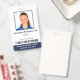 Behalte Ihr Krankenhaus- oder Praxissafe mit individuellen Foto-ID-Abzeichen mit Foto, Name, Berufsbezeichnung, Personalausweis und Strichcode sowie dem Firmennamen. Sie können auch eine Abteilung, wenn Sie möchten. Ideal für eine Krankenschwester oder andere Mitarbeiter. Auf der Rückseite können Sie weitere Informationen hinzufügen, wie z.B., wo das Abzeichen zurückgegeben wird, wenn es verloren geht. Passen Sie es mit einem Foto, Strichcode und benutzerdefiniertem Text in der Seitenleiste an. Das quadratische Foto hat einen dünnen blauen Rand auf weißem Grund. Der Text ist dunkelblau mit Ausnahme des Krankenhausnamens unten, der weiß auf einer navy blauen Band ist.
