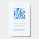 Mit diesen individuell anpassbaren, vertikalen ID-Abzeichen für Mitarbeiter mit qr-Code erhalten Sie ein sauberes, modernes Aussehen für Ihr Team. Sie zeichnen sich durch einen minimalistisch gedämpften grauen Hintergrund mit einem weichen blauen Streifen und blauen serifenlosen Text aus. Jedes Abzeichen kann mit einem Mitarbeiter-Foto, einem Namen und zwei zusätzlichen Textzeilen personalisiert werden. Ideal, um eine ID-Nummer, einen Jobtitel, eine Abteilung oder einen Bürostandort einzuschließen. Fügen Sie oben Ihr Firmenlogo hinzu, um eine einheitliche, berufliche Markenidentität zu schaffen. Auf der Rückseite befindet sich ein optionales, benutzerdefiniertes Textfeld, das perfekt für Rückgabeanweisungen, Notrufinformationen oder andere wichtige Details geeignet ist. Diese Abzeichen sind für Einfachheit und Funktionalität konzipiert und eignen sich insbesondere für Unternehmen, Schulen, Gesundheitseinrichtungen, Veranstaltungen und vieles mehr - überall dort, wo eine polierte und sichere ID-Lösung benötigt wird.