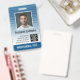 Blau und Weiß - Ein modernes Business-Design, das Ihre Bürologos und Ihren Mitarbeiternamen unterstreicht. Dieses trendige Bürodesign beinhaltet auch eine Abzeichen ID Nummer, Ablaufdatum und Krankenschwester oder einen anderen Titel. BACK: Sie können einen Scan-Bar-Code auf der Rückseite und einen Ort hinzufügen, um Informationen hinzuzufügen, wenn das Abzeichen verloren ist. Sie können auch die Hintergrundfarbe ändern. Klicken Sie auf die Schaltfläche Anpassen und wählen Sie eine Hintergrundfarbe für die Vorder- und Rückseite aus.