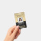 **Bitte beachten Sie, dass der Hintergrund so gedruckt ist, dass er metallisch aussieht, das Produkt jedoch nicht aus Metall und nicht aus Folie ist.** Repräsentieren Sie Ihr Unternehmen stilvoll, indem Sie den Mitarbeitern moderne und berufliche Identifizierungssysteme anbieten. Das Logo, das Foto, der Bar und alle Formulierungen auf dieser Vorlage sind einfach zu verändern. Das Schwarz-Gold-Design verfügt über einen metallischen Hintergrund, Ihr Firmenlogo, ein quadratisches Bild, Mitarbeitername und -titel sowie UPC/Strichcode auf der Rückseite. Es bietet die Organisation und Sicherheit für die Mitarbeiter des Unternehmens und präsentiert das Corporate Branding mit einem stilvollen klassischen Aussehen. Bitte beachten Sie, dass Gold farblich gedruckt ist, nicht metallische Folie.