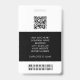 Personalisieren Sie dieses Abzeichen mit Ihrem Logo auf der Oberseite, dem Foto, dem Namen, dem Titel oder der Abteilung auf der Vorderseite. Angaben zur Firma, Mitarbeiternummer, QR-Code, Bar oder andere Schlüsseldaten auf der Rückseite. Ändern Sie die schwarze Farbe zu allem, mit unseren Bearbeitungswerkzeugen - Mehr vorgefertigte Designs in unserer Sammlung.